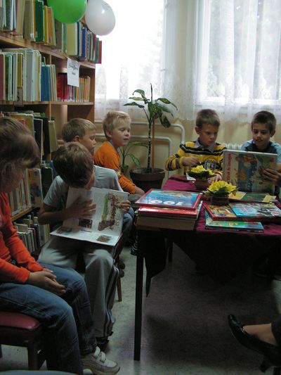 Október 7-én pénteken 13 órától mesedélutánra hívtuk a helyi általános iskola elsőseit a gyermekkönyvtárba, ahol először megismerkedtek a könyvtárral, a könyvtárhasználat szabályaival, majd a mesesarokban két, állatokról szóló történetet hallgattak meg.