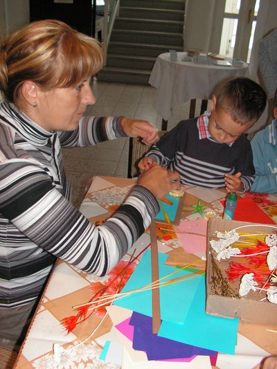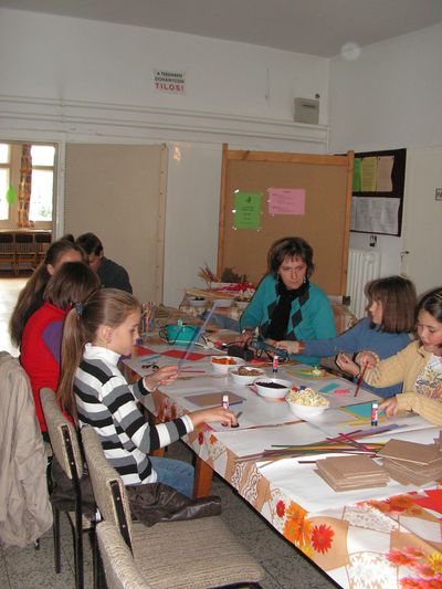 15 órától Szabóné Baksi Zsuzsanna segítségével faliképeket készítettünk különféle őszi termések, szárazvirágok felhasználásával.